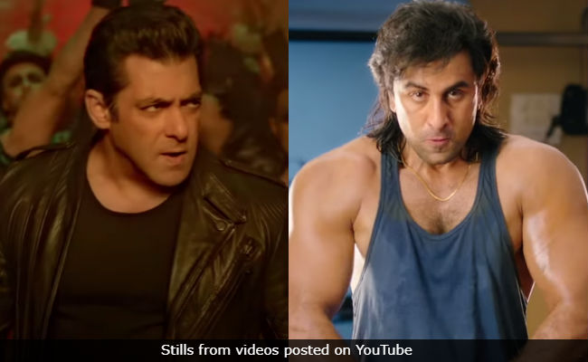 Salman Khan (L) in Race 3 and Ranbir Kapoor (R) in Sanju. (Images courtesy: YouTube)