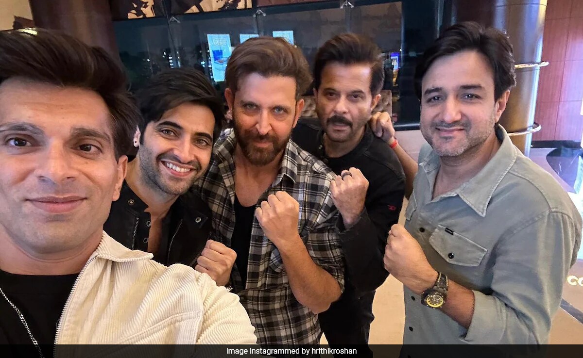 No points for guessing which film Hrithik Roshan and his Fighter co-stars watched during their movie night in Mumbai, on Saturday. The superstar stepped out our for a movie session with Anil Kapoor, Karan Singh Grover, Akshay Oberoi and the film's director Siddharth Anand. Documenting a few moments from movie night, Hrithik Roshan wrote in his Instagram post, "Fighters Day at the movies. #Fighter." Deepika Padukone, who stars as Squadron Leader Minal Rathore in the film, was MIA from the frame. The film had a theatrical release on January 25.