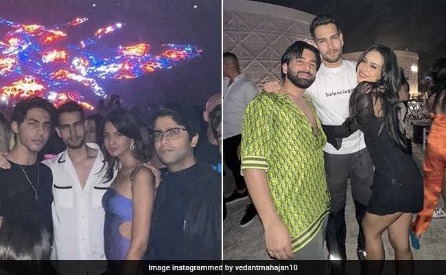 Shah Rukh Khan and Gauri Khan's son Aryan Khan, who returned to Mumbai on Wednesday morning, ushered in 2023 in Dubai. A couple of pictures from a New Year's eve party in Dubai have been shared by Aryan's friend Vedant Mahajan on his Instagram profile. The album features Aryan Khan, Nysa Devgan (daughter of Ajay Devgn and Kajol), Orhan Awatramani, Tania Shroff, Ahan Shetty (son of Suniel and Mana Shetty). We also got a glimpse of Athiya Shetty and boyfriend KL Rahul in one of the frames. Posting the pictures from Dubai, Vedant Mahajan wrote in his caption: "If you don't remember, it never happened." He added the hashtag #NYE.