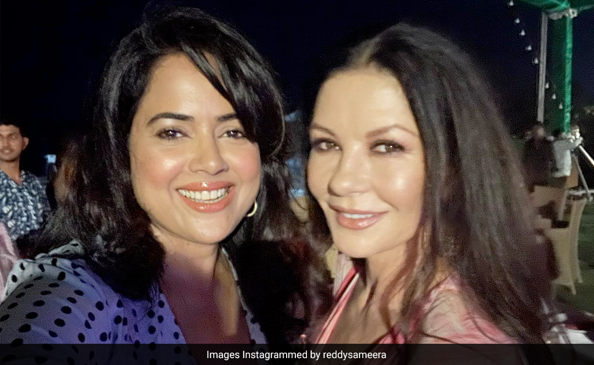 Sameera Reddy had a great time over the week, all thanks to her meeting Hollywood actors Catherine Zeta-Jones and Michael Douglas at the 2023 International Film Festival of India at Goa. Besides clicking selfies, the Chicago actress also recorded a video for Sameera Reddy's son Hans. In the video, she can be heard saying, “Hello Hans, I am with your mom here in the beautiful Goa. And I hear you live here, you're so lucky. Please be good to your mama okay?” Sharing some selfies with Catherine Zeta-Jones and a video, Sameera Reddy wrote, "@catherinezetajones you have a heart of gold. My Hans was over the moon with her msg for him @michaelkirkdouglas meeting you was legendary. Goa what a surprise week it has been.”
