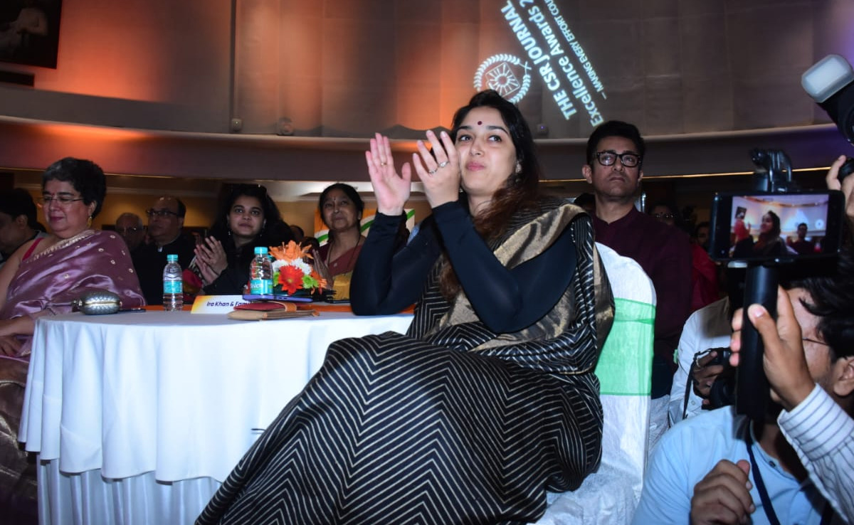 Aamir Khan, his daughter Ira Khan were felicitated at the 10th edition of The CSR Journal Excellence Awards in Mumbai on Saturday. The father-daugther duo were joined by Aamir Khan's first wife Reena Dutta and Ira's fiance Nupur Shikhare at the event. Aamir Khan was felicitated by Chief Minister of Maharashtra Eknath Shinde. Defence Minister Rajnath Singh was also present on stage. Ira Khan received an award. Aamir, Ira, Reena and Nupur can be seen seated together at the event. Aamir Khan wore a maroon-coloured shirt while Ira was clad in a black saree. Take a look at the inside pictures here: