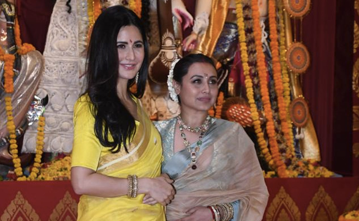 Look who just checked into Mumbai's iconic North Bombay Sarbojanin Durga Puja Samiti pandal on Monday evening - Katrina Kaif. The actress was a ray of sunshine in a bright yellow saree as she attended the festivities. She happily posed for the cameras stationed at the pandal. That's not it, she also posed with Rani Mukerji, who was also dressed in her festive finery. Katrina Kaif will soon star in the Salman Khan-led Tiger 3, which has been produced by Rani Mukerji's husband Aditya Chopra. The film is sated to release on Diwali.