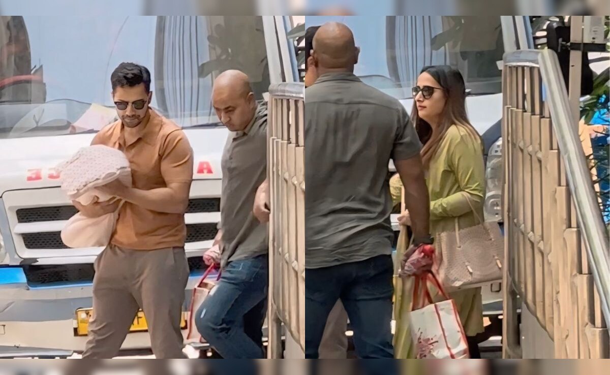 Varun Dhawan and Natasha Dalal are the new parents in town. The couple welcomed their first child, a baby girl on Monday (June 3). On Friday afternoon, the couple took their little one home. This marked Natasha's first appearance after welcoming her daughter. The couple were pictured outside the hospital and were dressed in their casual best. In one of the pictures, the actor is seen holding the little munchkin in his arms. The baby was dressed in a cute pink cloth.