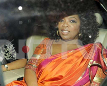 The TV mogul also visited Amitabh Bachchan's house to meet Abhishek and Aishwarya Rai's new born daughter and later attended a star-studded party hosted by socialite Parmeshwar Godrej at her residence.