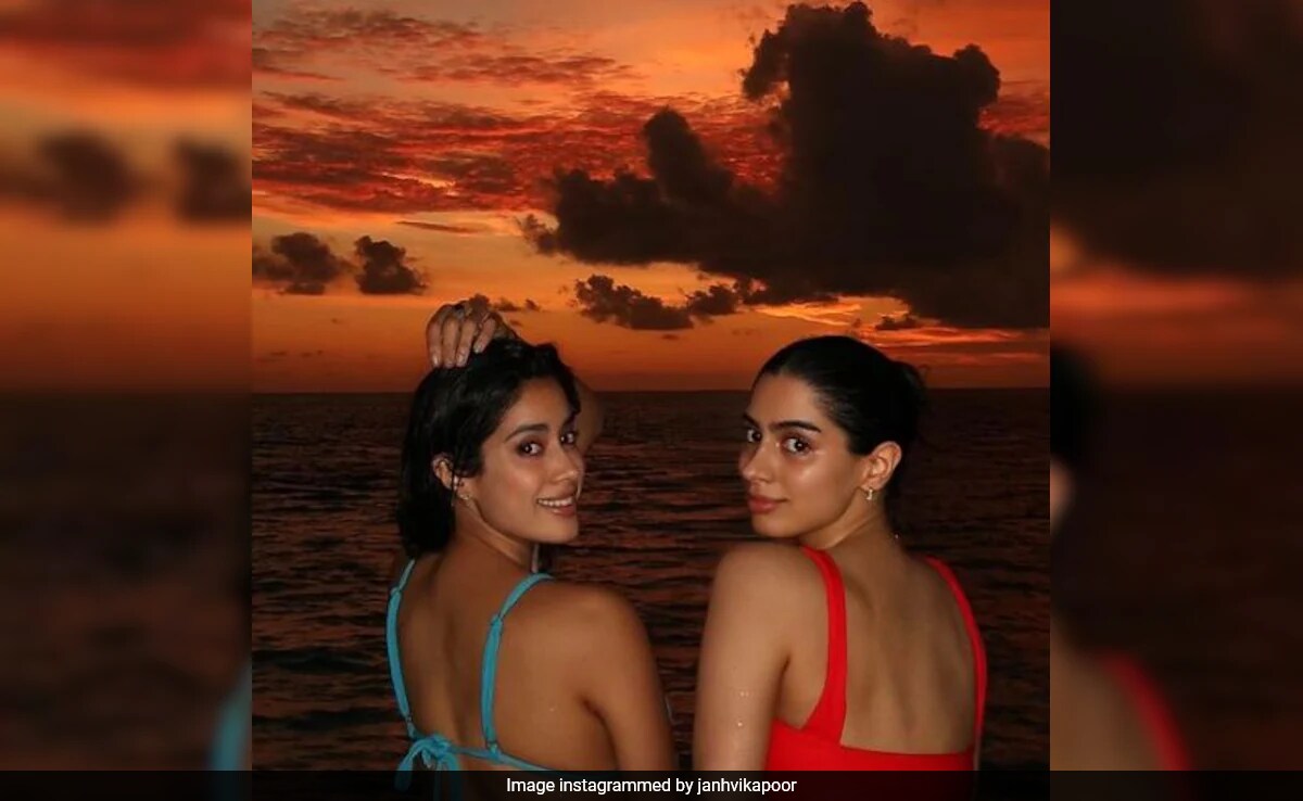 Janhvi Kapoor recently shared pictures from her beach holiday and they are all things nice. Accompanying her was the usual suspect - her sister Khushi Kapoor. In the pictures, Janhvi and Khushi could be seen looking at the sunset together. The Ulajh star summed up the picture-perfect moment with these words: "I'll be looking at the moon, but I'll be seeing you." While Janhvi opted for blue swimwear, Khushi picked a red swimsuit. Take a look at the post.