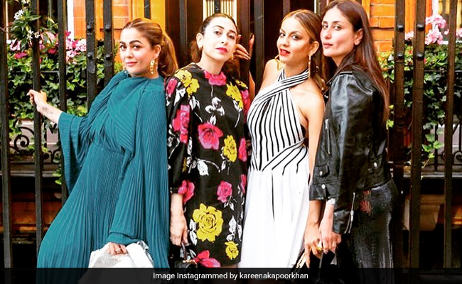 Kareena Kapoor, holidaying in London, managed to click and share a perfect picture with her sister Karisma Kapoor, BFF Amrita Arora and friend Natasha Poonawalla. The quartet look fabulous as ever as they pose together. Kareena Kapoor added a Mean Girls reference to her caption. Kareena's caption is a tweaked version of what Gretchen Wieners says in the film after queen bee Regina George breaks a petty rule. "You can't sit with US...but you can stand and pose with US...cause that's what we love to do," wrote Kareena Kapoor. To say it like Gretchen Wieners does in the film, Kareena's post with her friend was "fetch."
