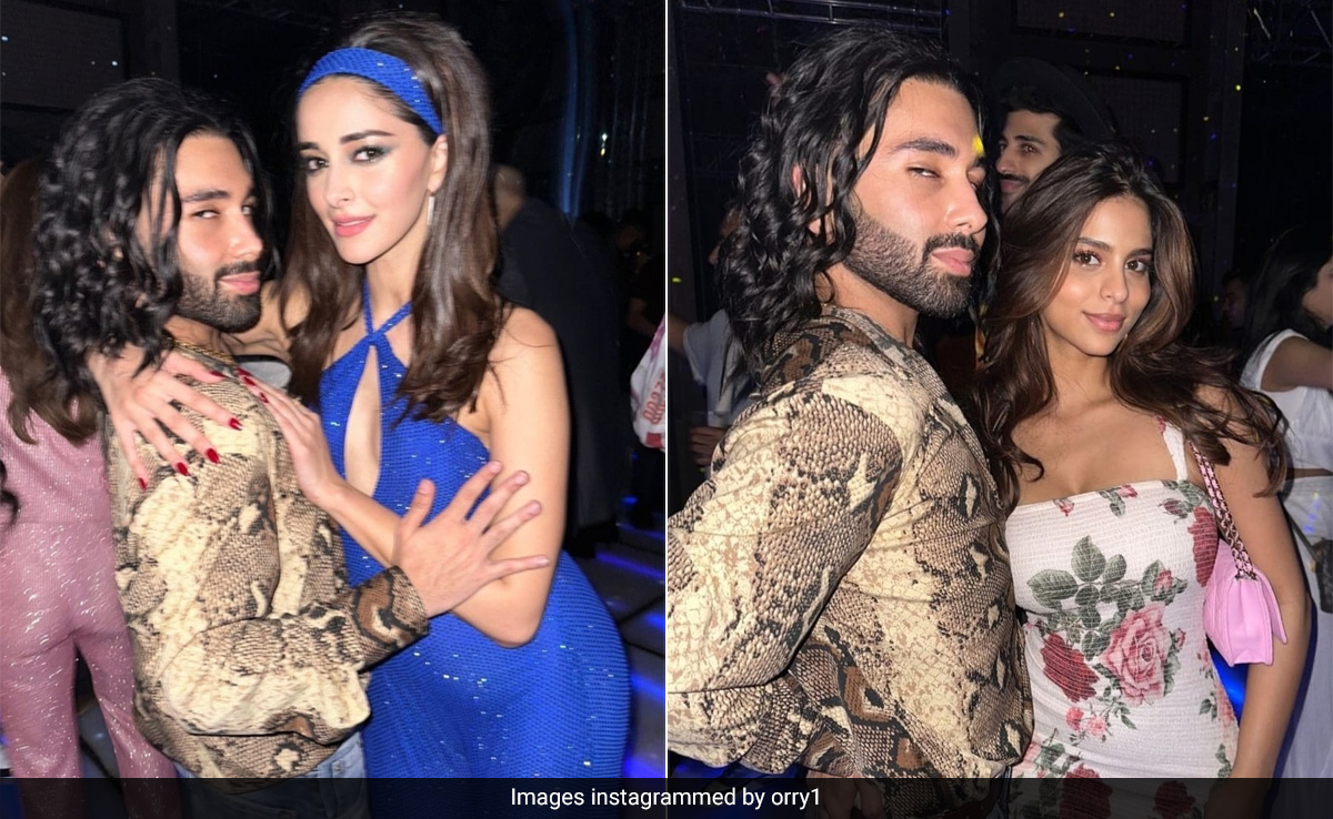New day, new pictures from Orry's party. Orry recently shared pictures with Suhana Khan, Ananya Panday, Aditya Roy Kapur, Shanaya Kapoor, Rysa Panday and Siddhant Chaturvedi. The party was hosted to celebrate the birthday of Kho Gaye Hum Kahan director Arjun Varain Singh and actor Hitaali. Needless to say, everyone was dressed up in their party best. Suhana Khan wore a floral dress and she looked pretty as ever. Ananya Panday added some bling and retro vibes with her OOTN. She was dressed in a blue ensemble and wore a matching blue hairband as well. Ananya Panday's rumoured boyfriend Aditya Roy Kapur twinned in blue shirt and was all smiles. Siddhant Chaturvedi wore a black shirt. Ananya Panday's sister Rysa was also present at the party. Shanaya Kapoor looked gorgeous as ever. Take a look: