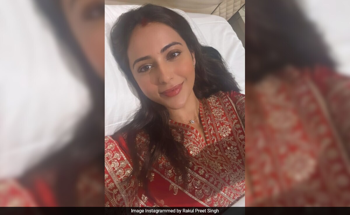 Rakul Preet Singh's first Karwa Chauth celebrations after wedding was not a fun-filled one as she was advised to take rest following an injury she suffered during her workout session. The De De Pyaar De actor shared a picture of herself, lying in bed, on her Instagram stories. She can be seen sporting sindoor and wearing a red ensemble. Rakul wrote in the caption, "Bed rest wala first Karwa Chauth". Earlier, Rakul shared glimpses of her minimal mehendi. Re-sharing the story on his Instagram feed, Jackky Bhagnani wrote, "I am so hungry but I won't eat too." Rakul and Jackky had a destination wedding in Goa earlier this year.