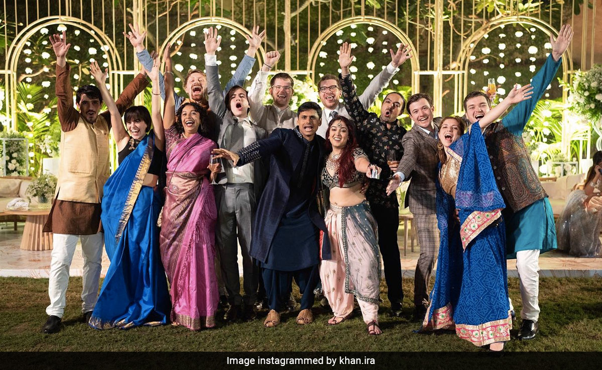Days after hosting a grand wedding reception in Mumbai for her family and friends from the film industry, Ira Khan treated her Instagram fans and followers to yet another picture from her wedding day. On Tuesday, Ira Khan, who is the daughter of actor Aamir Khan, shared a picture from her wedding day with her friends "from all over the world". In the picture shared, we can see Ira and her husband Nupur Shikhare posing adorably with a bunch of their friends. The picture is from their wedding day in Mumbai on January 3rd. For the caption, Ira wrote, "I dragged a bunch of people from all over the world to India and they came also."