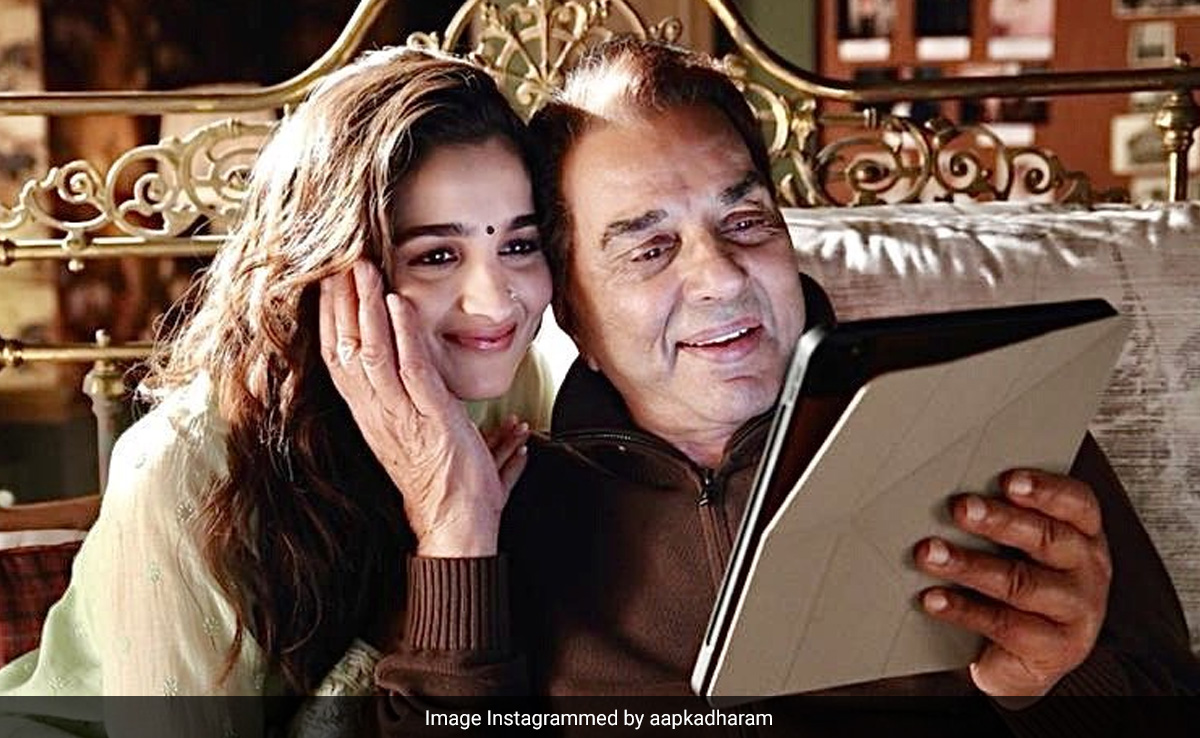 Veteran actor Dharmendra has shared a behind-the-scenes glimpse from the sets of his upcoming film Rocky Aur Rani Kii Prem Kahaani. The film, which marks Karan Johar's comeback as a director, stars Ranveer Singh and Alia Bhatt in lead roles. In the picture shared by Dharmendra, he and Alia are seen looking at an iPad. For the side note, he wrote, “Friends, Loving Alia is showing me glimpses of my romantic past. Rocky Aur Rani Kii Prem Kahaani.” Replying to the post, Dharmendra's son, actor Sunny Deol dropped red hearts.