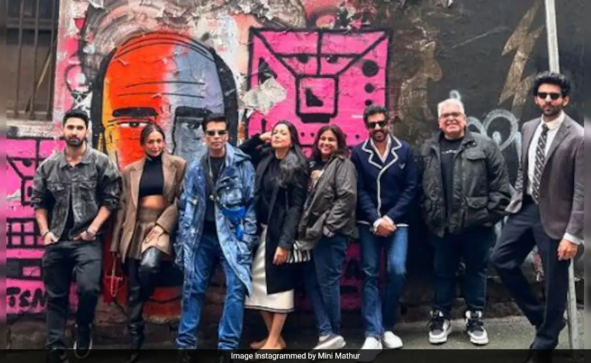 Karan Johar, Malaika Arora, Kartik Aaryan, Kabir Khan, Mini Mathur, Kill star Lakshya are currently in Melbourne to attend the Indian Film Festival of Melbourne (IFFM) 2024. On the sidelines of the event, the stars explored the Melbourne streets and became "posers". Mini Mathur shared the images on her Instagram feed. In the first picture, Malaika Arora, Karan Johar and Mini Mathur can be seen posing against the street-graphitti. In the second click, Kabir Khan can be seen clicking Karan, Malaika and Mini. The stars were joined by Kartik Aaryan and Lakshya in the other clicks. Sharing the images, Mini Mathur wrote, "Melbourne Street posers." In the comments section, Karan Johar wrote, "Best." Amrita Arora dropped a series of heart emojis in the comments section.