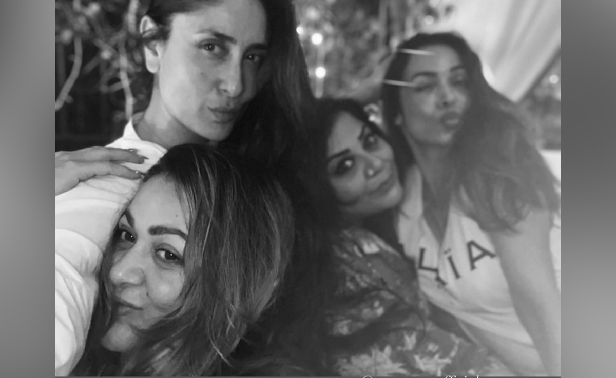 Kareena Kapoor is extremely close to her girl gang and this is no secret. The actress is often seen partying and even going on vacations with her BFFs Malaika Arora, Amrita Arora, and sister Karisma Kapoor. On Saturday, Kareena Kapoor shared a series of black and white photos in which she is seen with the Arora sisters and celebrity makeup artist Mallika Bhat. Karisma Kapoor, who is missing from the images, got a mention in a note that Kareena Kapoor attached with the pictures. “Our forever. Missing our Lolo (heart emoji),” Kareena wrote, sharing a selfie of the four friends looking gorgeous as always.