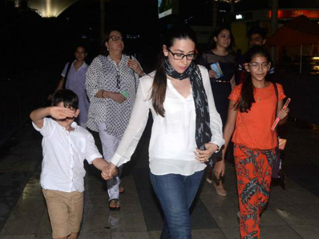 Karisma Kapoor photographed with her children at the Mumbai airport.