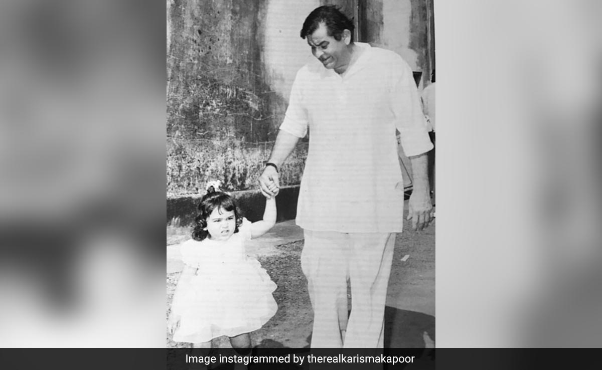 Karisma Kapoor shared a throwback picture from her childhood days to wish her grandfather Raj Kapoor on his birth anniversary. In the black-and-white picture, baby Karisma can be seen holding her "dadaji's" hands. She wrote in the caption, "The one who led the way.. remembering Dadaji on his birthday." Karisma's post garnered the Internet's love. A user wrote, "cute." Another user wrote, "Oh so cute picture."Another comment read, "So beautiful." Karisma's cousin Riddhima Kapoor Sahni dropped a heart emoji in the comments section. Take a look: