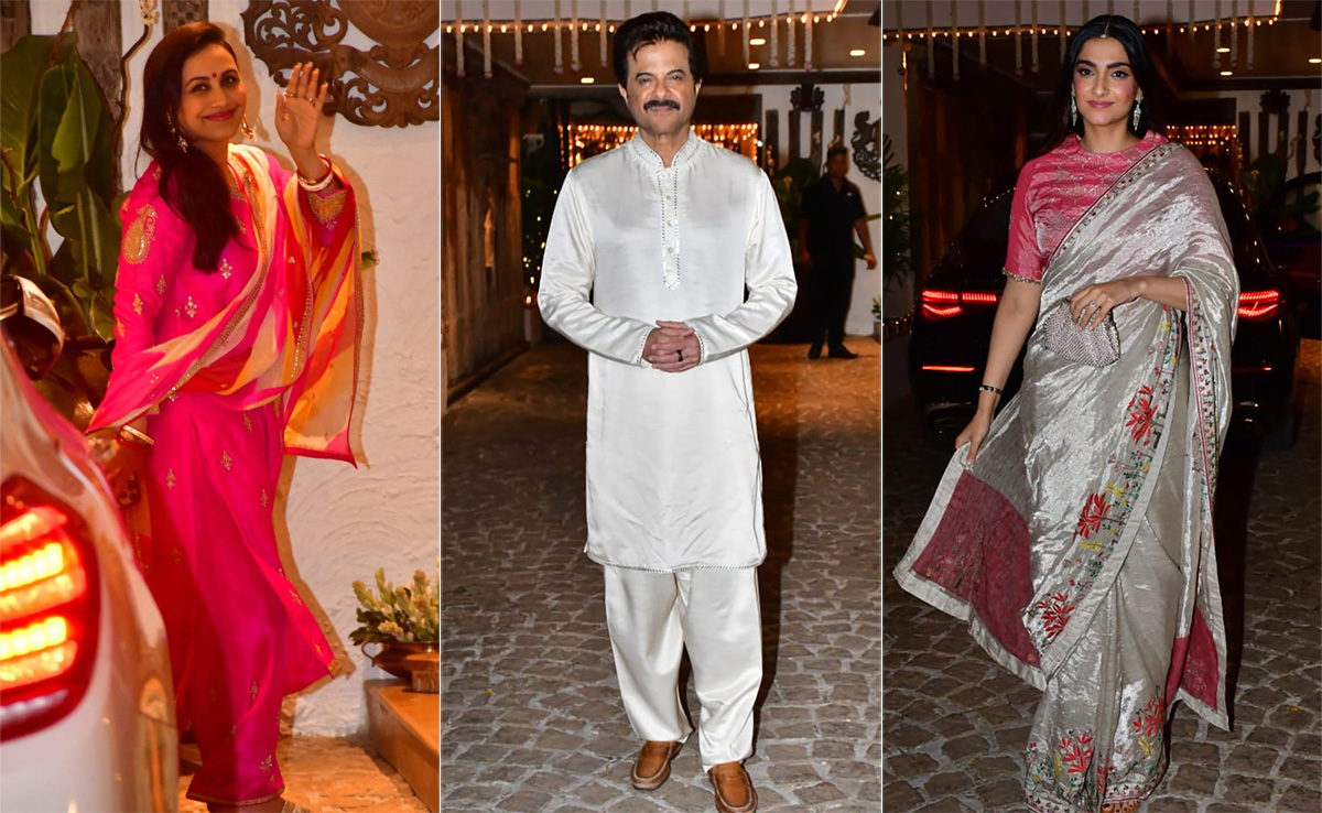 Rani Mukerji, Farah Khan, Sonam Kapoor, Shilpa Shetty's husband Raj Kundra, Varun Dhawan arrived at Anil Kapoor's Juhu residence to celebrate Karwa Chauth. Anil Kapoor, too, was pictured by the paparazzi. Anil Kapoor wore a white kurta for the occasion. Sonam Kapoor was dressed in a pretty saree. She completed her look with danglers and a maang tikka. Anil Kapoor's big brother Boney Kapoor also joined the celebrations. Sunita Kapoor hosts the Karwa Chauth festivities every year at her residence. Bollywood wives perform the rituals at Sunita's place. Take a look at Anil Kapoor and Sonam Kapoor's OOTNs here: