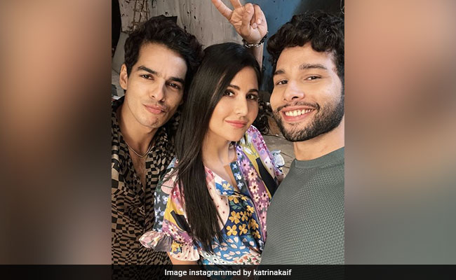 Katrina Kaif knows how to make work look like one big party. And this time around, she has her Phone Bhoot co-stars Siddhant Chaturvedi and Ishaan Khatter to thank for all the extra laughs. Late on Sunday, the Bollywood superstar shared a post featuring her alongside Ishaan and Siddhant, all looking their fashionable best for what appears to be the promotions of the film. The post begins with a video of the three actors flexing their muscles and being cool as always. This is followed by a selfie of the trio smiling for the camera. Sharing the images, Katrina Kaif said, “Back with my (phone and ghost emojis -- Phone Bhoot) boys.”