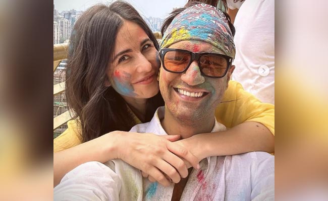 Katrina Kaif has blessed our social media feeds with not one but two happy images of her Holi celebration. No prizes for guessing that the actress celebrated the festival this time around at home with her husband, actor Vicky Kaushal. The couple were joined by Vicky Kaushal's parents Sham Kaushal and Veena Kaushal as well as Katrina's sister Isabella Kaif. In the first post, Vicky and Katrina – with their faces smeared with colours – are attempting to take a selfie as Isabella photobombs them with a goofy pose. In the second selfie, the couple are joined by Vicky's parents and Isabella. In the caption, Katrina Kaif said: “Happy Holiiiiiiiiiiiii,” with a rainbow emoji.