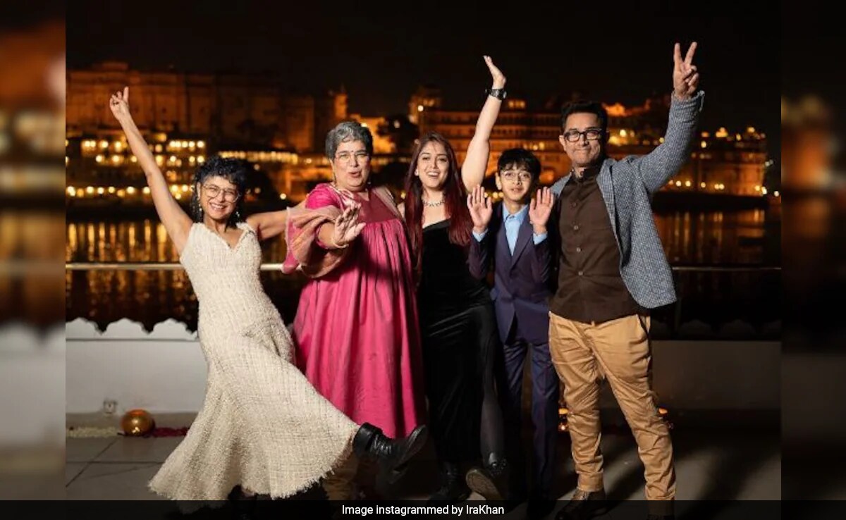 Ira Khan shared a set of images from Udaipur festivities. The pictures captured the famjam moments. In one picture, Ira Khan can be seen dancing with her father Aamir Khan, mother Reena Dutta, Kiran Rao and Azad. In another click, Ira and family can be seen joined by Nupur and his mother Pritam Shikhare. Ira also shared a few pics with cousin Zyan Marie Khan, friend Mithila Palkar and others. She wrote in the caption, "We clean up well." Take a look: