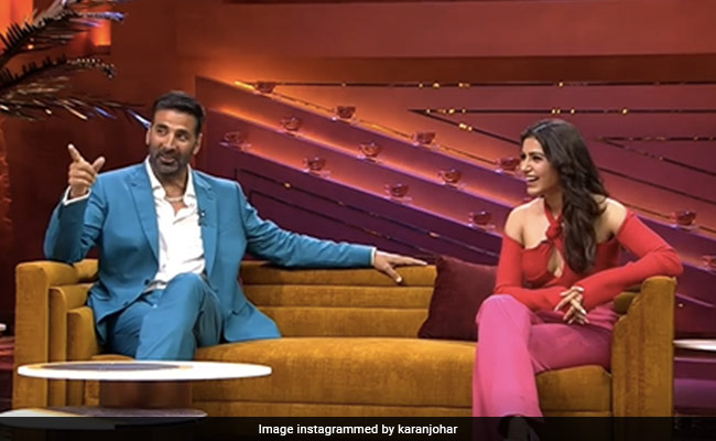 After Janhvi Kapoor and Sara Ali Khan's Koffee With Karan 7 episode, Akshay Kumar and Samantha Ruth Prabhu are going to star in the forthcoming episode, airing this Thursday. Filmmaker Karan Johar shared a promo of the episode on social media and yet another glimpse of a juicy episode. The clip starts with Akshay carrying Samantha as they make a stylish entry on the show. As Karan prompts Samantha about her marriage, the latter jokingly says, "You are the reason for unhappy marriages." Reason? She explained: "You have portrayed life to be K3G (Kabhi Khushi Kabhie Gham). In fact, the reality is KGF."