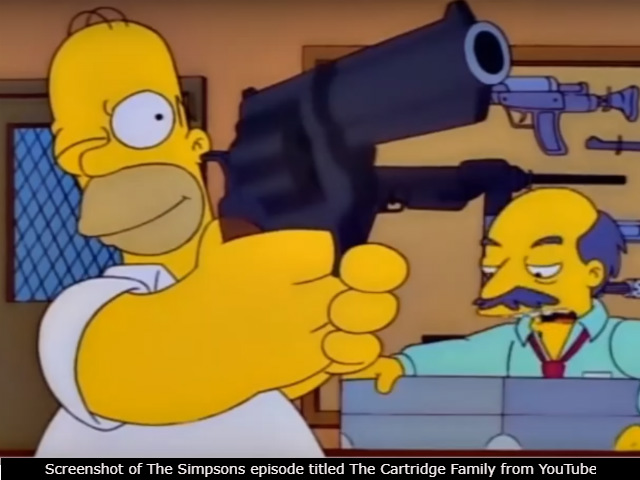 Much of the episode appeared to be anti-gun, with Homer playing the role of a stubborn gun-rights advocate, who says: "If you still don't think guns are great, we'll argue some more."