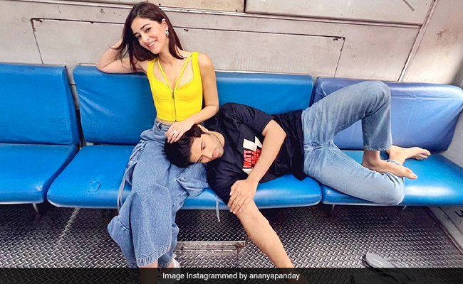 Ananya Panday and Vijay Deverakonda have been busy with Liger promotions ever since the trailer dropped. On Friday, the on-screen couple rode the local Mumbai train for their publicity duty. Ananya shared a picture with Vijay laying on the blue seat and resting his head on her lap. In other images, the Khaali Peeli actress poses with one hand holding on to a hanging strap. In the caption, she wrote: "LIGER promotions are "on track" let's go boyzzzzzz." For the pictures, the actress opted for a bright yellow crop top and jeans while Vijay went casual in a graphic t-shirt and jeans.