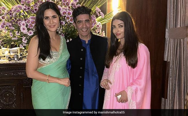 Manish Malhotra, who hosted a grand Diwali bash at his house in Mumbai on Thursday evening, has been sharing pictures from the party on his Instagram handle. On Sunday, he shared pictures with two "absolute beauties" - Aishwarya Rai Bachchan and Katrina Kaif. In the images, Manish can be seen standing in the centre while Aishwarya and Katrina stand beside the designer. Aishwarya, as usual, looks gorgeous in a pink ensemble, while Katrina looks stunning in a green saree. Both outfits are from the shelves of designer Manish Malhotra. Sharing the post, he wrote, "With the two absolute beauties glowing in the perfect festive colours"