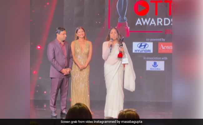Neena Gupta is an actress who needs no introduction. The veteran performer has an impressive body of work that has left a mark on cinema lovers across the country. At the recently held Filmfare OTT Awards, Neena Gupta was recognised for her work in the web series Panchayat. She was also nominated in the category – Best Supporting Actor, Series (Female): Comedy – for her character in Masaba Masaba, which featured her daughter Masaba Gupta in the titular role. Now, an endearing video of Neena Gupta accepting her award has been shared on social media by Masaba, who was also nominated in the best actress category for Masaba Masaba.