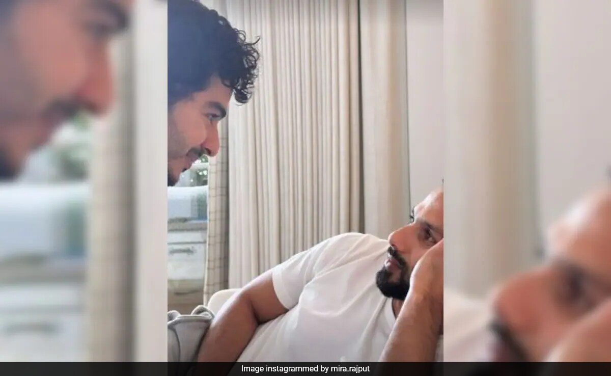 Mira Rajput, wife of Bollywood superstar Shahid Kapoor, on Saturday, gave a glimpse of her husband's "staring contest" with her brother-in-law Ishaan Khatter. An avid social media user, Mira, who has 4.7 million followers on Instagram, shared an adorable peek, wherein the actor-brothers Shahid and Ishaan are playfully staring at each other. Shahid can be seen lying on the bed, wearing a plain white T-shirt, while Ishaan is standing on the other side and smiling.
