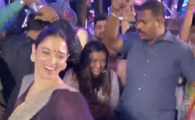 Baahubali star Tamannaah, on Monday evening, stepped out for Navratri celebrations in Mumbai. During her day out, the actress danced her heart out and how. She even did a little garba along with her fans. Tamannaah was dressed in her festive best for the Navratri celebrations. The latter section of the video features Tamannaah dancing to dhol beats. In short, Tamannaah ruled the dance floor. The actress paired a purple kurta with a matching churidar. She added a golden dupatta to complete her festive look. She accentuated her look with statement earrings. The video from the dance is trending big time.