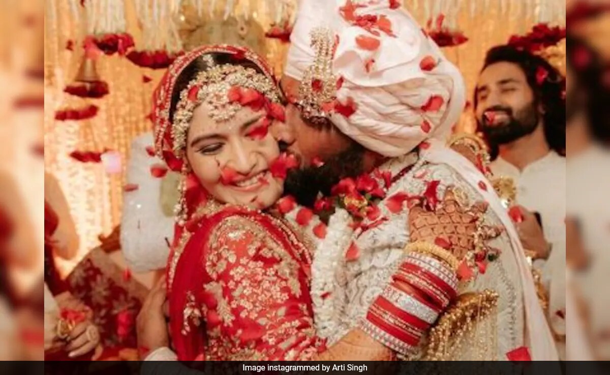 Actor and Govinda's niece Arti Singh married businessman Dipak Chauhan last week in a grand ceremony. A few days after her wedding, the happy bride treated her Instafam to some new pictures. Needless to say, the pictures are absolutely stunning. Arti, who chose a traditional red lehenga for her wedding, can be seen posing adorably with Dipak in the pictures. In one click, Dipak can be seen kissing the new bride on her cheek and flower petals being showered upon them. Sharing the pictures on her Instagram feed, Arti wrote, "Mr and Mrs. Chauhan." Take a look:
