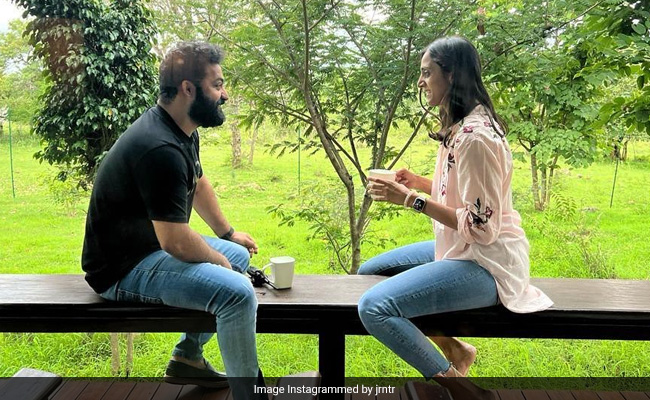 RRR actor Jr NTR has shared a cute picture with his wife Lakshmi Pranathi. The South star, who rarely posts on social media, has dropped the picture-perfect moment on Instagram. Jr NTR and his wife are sitting on a bench amidst the beautiful surroundings. The two are just casually sitting face to face and having a conversation. But not without their cups of hot beverage. The picture screams love from miles away. For the caption, Jr NTR wrote, "Moments like these...."