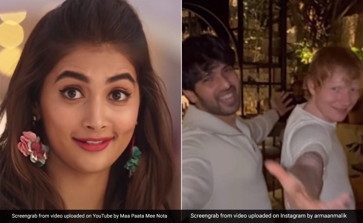 Pooja Hegde, who featured in the original song Butta Bomma with Allu Arjun, reacted to Ed Sheeran's performance to the song. Pooja shared a screengrab featuring Armaan Malik and Ed Sheeran on her Instagram story and wrote, "The crossover episode we didn't know we needed." Sharing a string of emojis and tagging Ed Sheeran, Pooja added, "My day is made! Buttabomma approvesss." For context, singer-composer Armaan Malik shared a video with Ed Sheeran today morning in which they can be seen matching steps to the song Butta Bomma. Ed Sheeran has come to India to perform in Mumbai on March 16 as a part of his concert +-=/x tour. Take a look at what Pooja posted: