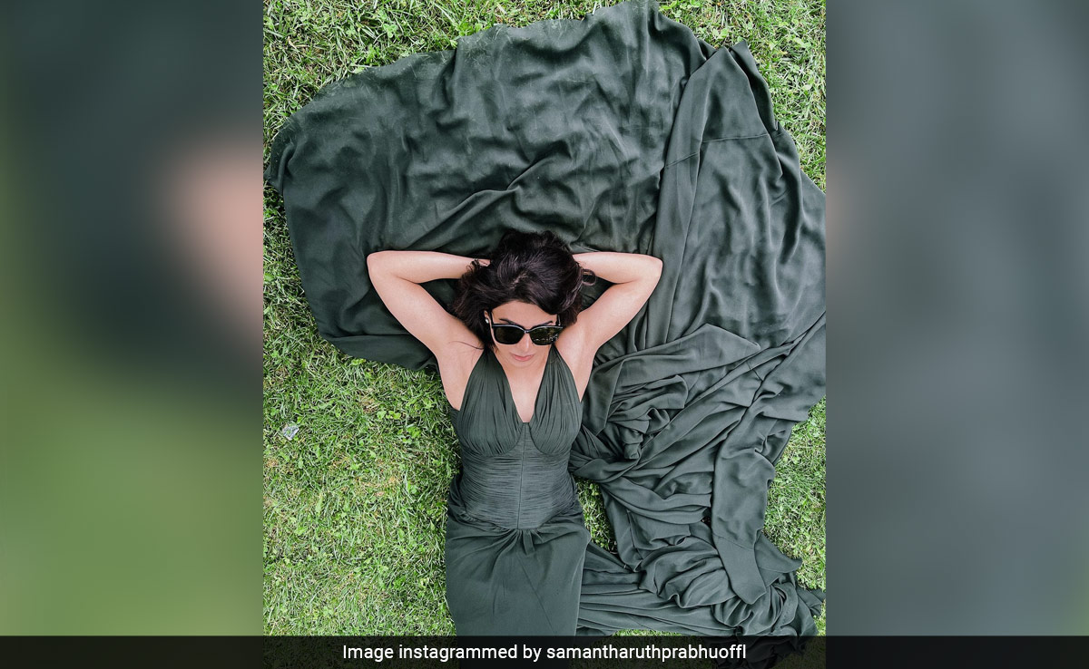 Samantha Ruth Prabhu just made our weekday a lot less dull by posting a stunning picture of herself in a dramatic green gown. The actress, who keeps her fans updated regarding her personal and professional life, treated her social media family on Tuesday evening to a new picture of herself lying on the grass with her goggles on. Needless to say, the actress looks radiant as ever. Sharing the image, the actress simply wrote, "Still dreaming." The post was an instant hit on Instagram. The actor's Shaakuntalam co-star Dev Mohan replied to the post with a fire emoji.
