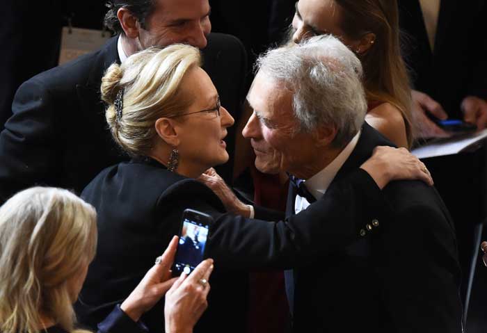 The Bridges of Madison County reunion: Meryl Streep and Clint Eastwood leaned in for a clinch 20 years after their four-day screen affair in the 1995 film.