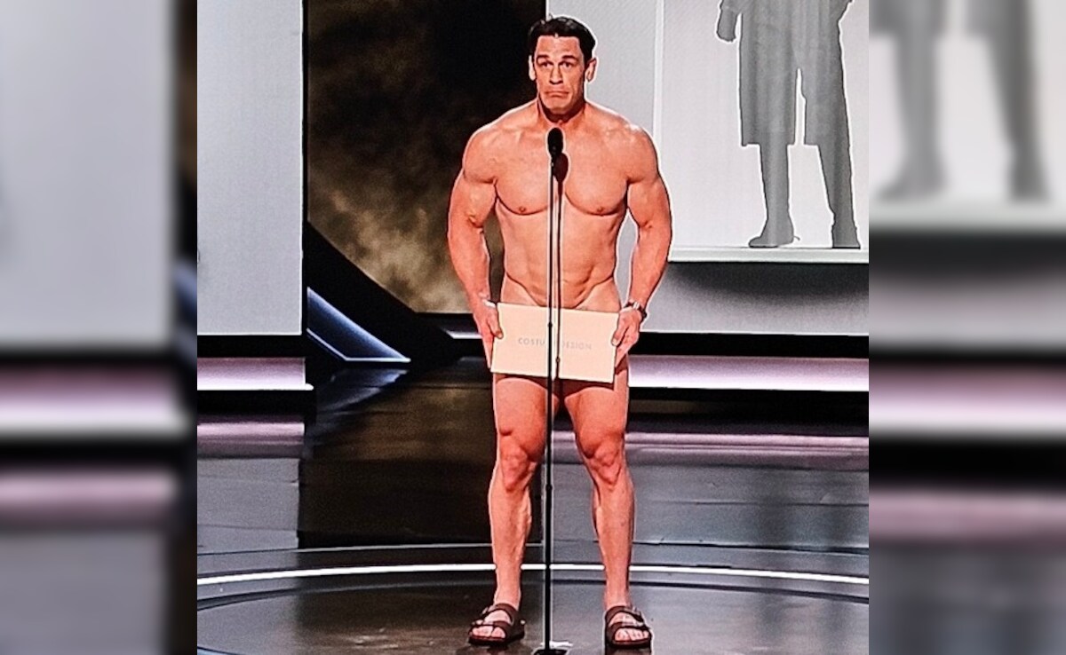 Actor-wrestler John Cena walked on to the stage at the 96th Academy Awards and highlighted the importance of costumes in films. How you ask? By opting not to wear one himself. John Cena prompted cheers and laughter from the audience (read Margot Robbie) as he walked on the stage partially naked. It so happened that John Cena joined host Jimmy Kimmel on the Oscars stage to present the award for Best Costume Design. The iconic moment was preceded by Jimmy Kimmel asking the Oscars audience "Can you imagine if a nude man ran across the stage today? Wouldn't that be crazy," just when John Cena was seen popping his head out from the corner of the stage. Jimmy Kimmel was quick to add, "I changed my mind. I don't want to do the streaker bit. I just don't feel right about it. It's an elegant event, you know, you should feel shame right now for suggesting such a tasteless joke." To this John Cena hilariously responded, "The male body is not a joke," while appearing on stage with a strategically placed oversized envelope. He emphasized “Costumes, they are so important. Maybe the most important thing there is," prompting another roar of laughter from the audience.