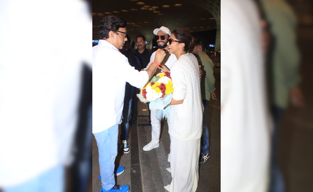 Deepika Padukone and Ranveer Singh made their first public appearance together after announcing that they are expecting their first child. The couple announced the news on Thursday. The couple were pictured at the Mumbai airport, twinning and winning in white outfits, on Thursday night. As the couple made their way to the airport, they received a warm welcome from fans and the paparazzi stationed there. The couple were greeted with flowers and sweets. "How sweet," exclaimed mom-to-be Deepika Padukone as a fan gave her and Ranveer flowers. "Congratulations," said a paparazzo. "Badhaai ho," another one added. "Kuchh meetha ho jaye," another paparazzo added. The couple thanked the fans for all the love and greetings.