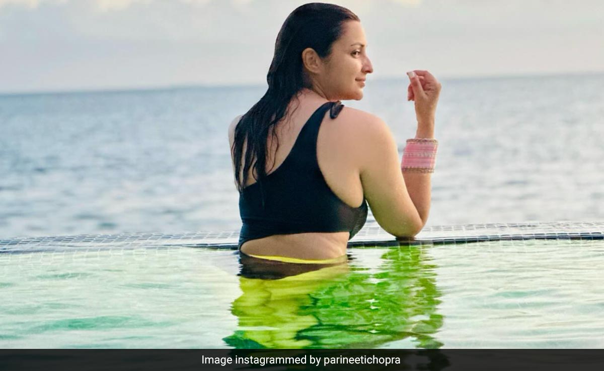 Parineeti Chopra, who is currently holidaying in Maldives, treated her Instafam to a picture. In the picture, Parineeti can be seen showing off her pink churas from the swimming pool. Parineeti, with her back to the camera, can be seen in the picture. Parineeti, who got married to Raghav Chadha last month, wrote in the caption, "NOT on my honeymoon! Photo taken by sister-in-law.#GirlsTrip." The Internet reacted to Parineeti's picture with hilarious comments. Let's have a look at the comment thread. A user wrote, "I think going on a honeymoon and bond with sister in law after the wedding is much needed than going on a honeymoon with the husband." Another comment read, "Love marriage walo ka bhi honey moon hota hai kya." Another user commented, "Achha hua jo apne bata diya." Take a look at the post here: