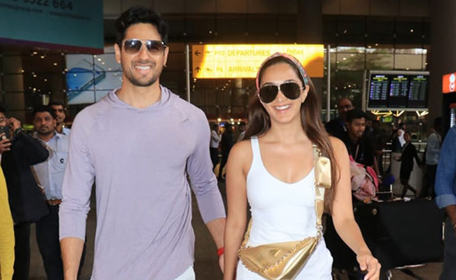 Kiara Advani and Sidharth Malhotra were recently spotted at Mumbai airport on Tuesday, and the couple looked oh-so-adorable. For the travel, Kiara opted for a white top with matching pants and heels. She added a headband and a golden waist bag to accentuate her look. On the other hand, Sidharth looked uber cool in a lavender sweatshirt paired with white pants and sneakers. The couple twinned in black sunglasses. As they made their way out, the couple flashed their million-dollar smile and waved at the shutterbugs stationed at the airport. The happiness on Kiara and Sidharth's faces is unmissable.
