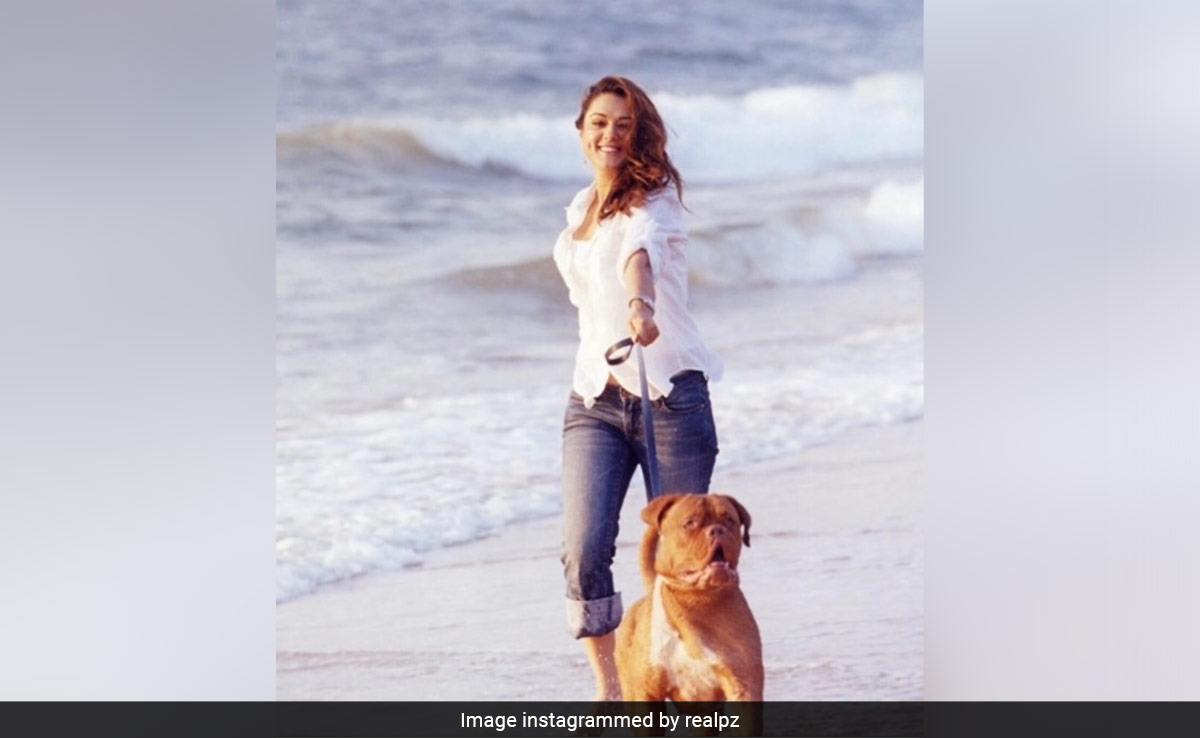 Preity Zinta walked down memory lane and shared a throwback Thursday post for her Instagram fans. Preity shared a picture with Salman Khan's late pet Myjaan. In the picture shared, Preity can be seen posing with Myjaan on the beach of Goa. Preity wrote in the caption, "One of my favourite photos and memory. This was taken in Goa... #Myjaan and me on the beach. She made sure no one came near me I thought I will take her for a walk, but it was definitely the other way around. @beingsalmankhan warned me that she might drag me all over the beach, but I was determined. My arm didn't feel like it was attached to my body anymore but it was soooo much fun ! I'm so happy the moment was captured in this photo.#memories #goa #throwbackthursday #takemeback #ting" FYI, Salman Khan's pet dog Myjaan died in 2009. Take a look: