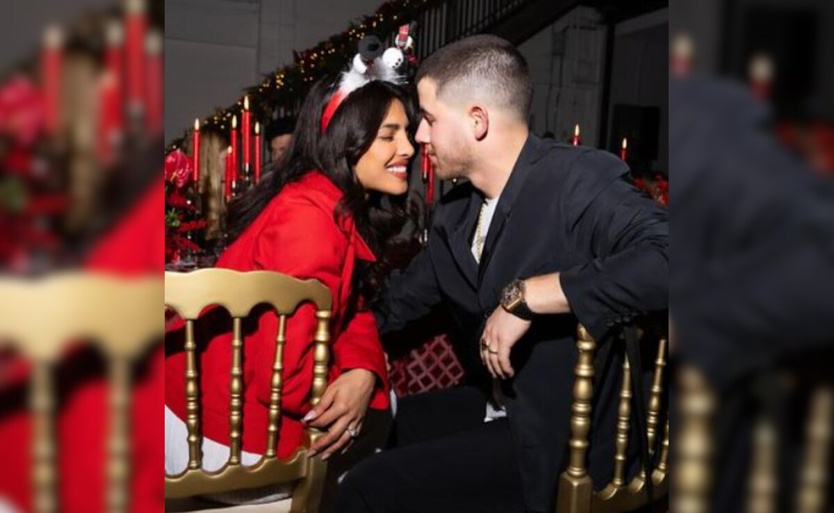 Priyanka Chopra shared pictures from her cosy pre-Christmas celebrations. Priyanka shared pictures with Nick Jonas and daughter Malti Marie. In the first picture, Priyanka and Nick can be seen posing adorably. Priyanka's red dress and Christmas head-accessory usher in the festive vibes. She shared a couple of pictures of her pet dog. But what caught the Internet's attention is, Malti Marie's playtime pictures. Malti Marie can be seen playing with a cricket bat. She can be seen enjoying cookies as well. Sharing the pictures, Priyanka Chopra wrote, "Home." Take a look: