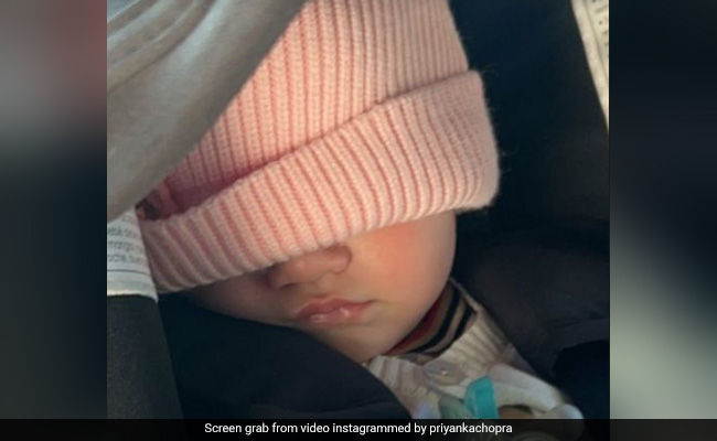 Actor Priyanka Chopra posted a new photo of her daughter Malti Marie Chopra Jonas. The photo appeared on her Instagram Stories early on Wednesday, which shows Malti Marie sleeping. The little one is seen sleeping in a stroller, leaned to one side. Her eyes are covered with a warm cap, revealing only her half face and her toys are kept next to her. The baby is wearing white sweater and a pink hat. Ms Chopra's Instagram Story has a two-word caption, "I Mean..."