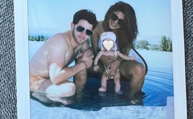 Priyanka Chopra and Nick Jonas spent the weekend with their daughter Malti Marie Jonas at their Los Angeles home. The actress has dropped several pictures on her Instagram handle offering a glimpse of her perfect Sunday enjoying pool time with her family. In one of the images, Priyanka and Nick can be seen inside the pool with their daughter Malti Marie happily posing for the camera. The actress has added a white heart emoticon to cover her daughter's face. She also shared a solo picture of herself on Instagram and captioned it as: "Sundaze," followed by heart emoticons. In the image, she is standing beside the pool in a black and white outfit. She completed her look with a black cap.