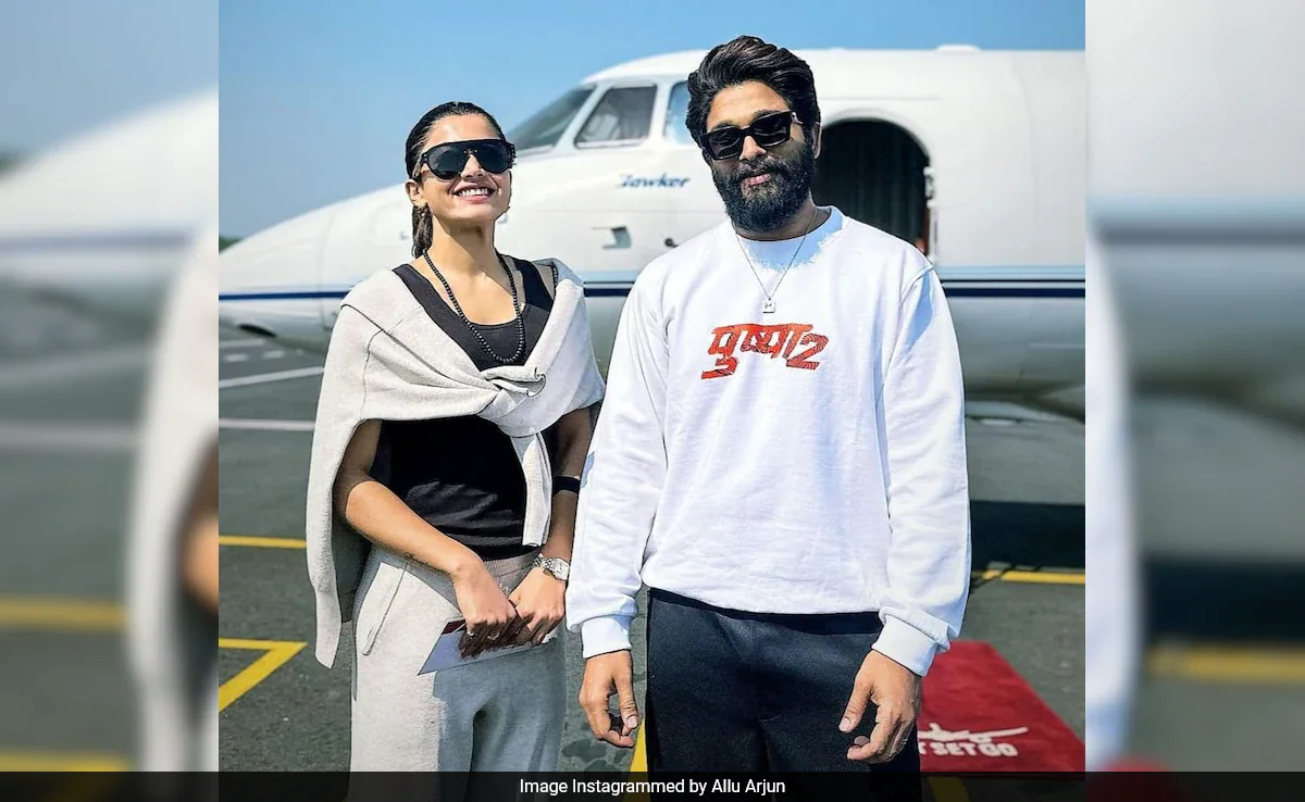 Ahead of the much-awaited trailer release of Pushpa 2, Allu Arjun and Rashmika Mandanna flew out to Patna. Interestingly, the trailer was scheduled to release in Patna to draw a large-number of North-Indian audience for the south films. Allu Arjun shared a happy picture with co-star Rashmika from the runway on his Instagram stories. Allu Arjun can be seen wearing a white sweatshirt with Pushpa 2 written over it. He amped up his glamour quotient with a pair of black shades. Rashmika Mandanna was also dressed in her casual best. She can be seen sporting her best smile into the camera. Sharing the picture, Allu Arjun wrote, "En route to Patna." Rashmika shared a picture where the two actors can be seen posing with their backs to the camera. Take a look: