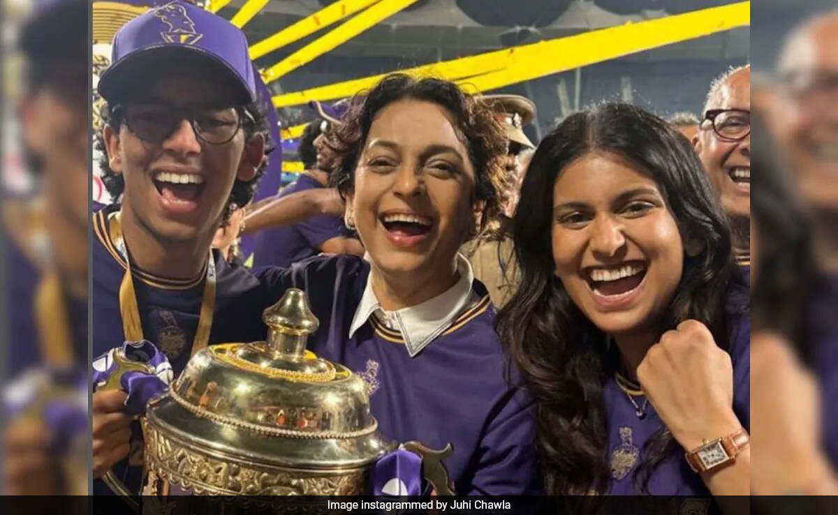 Juhi Chawla also reshared another collage, originally posted by a fan page. In those frames, Juhi and her husband Jay Mehta are seen in the stands, cheering after the win. The text attached to the post read, “The joy of Mr and Mrs Mehta. Nothing makes us happier than seeing this. All of us.”
