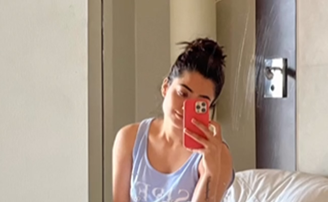 Rashmika Mandana's social media feed is something we all love for the refreshing candour that it oozes. The actress keeps us hooked with glimpses of her life as it unfolds every day, and this Sunday is no exception. Rashmika woke up to the new week with a bright smile, and we know that because she shared a morning mirror selfie. In the selfie, she can be seen in a lavender tank top while being seated in her bed. The white sheets and pillows surround her while she subtly smiles for the photo. The caption was a simple-yet-heartwarming “good morning” message in the form of a sticker.