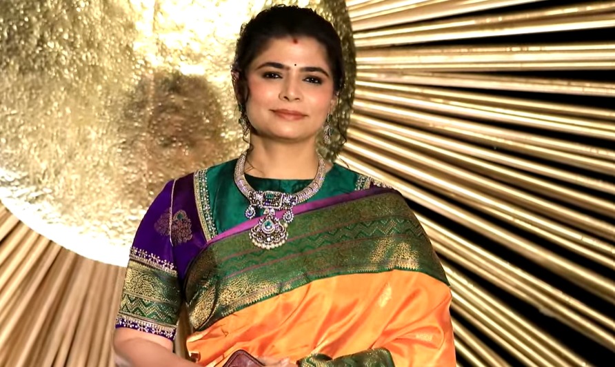 Chinmayi looked ethereal in a yellow saree.