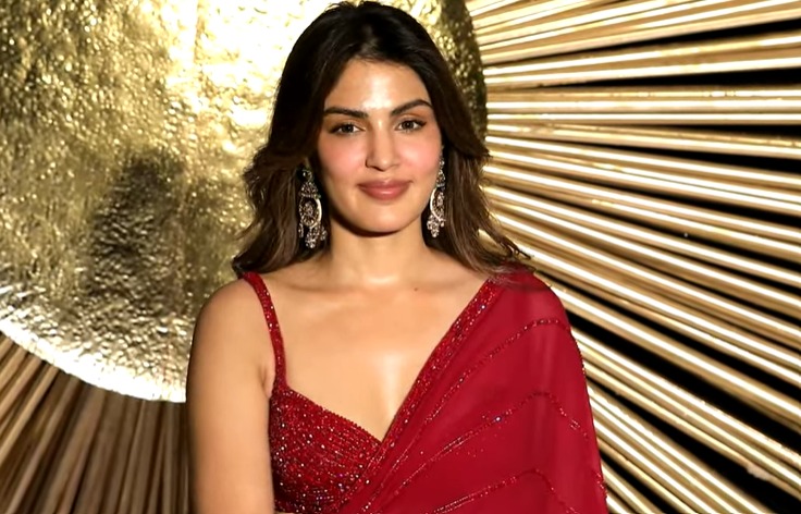 Rhea Chakraborty opted for a red saree.