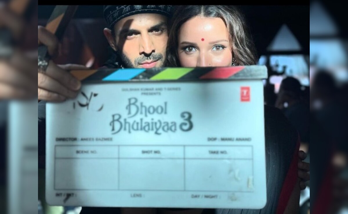 Assemble Bhool Bhulaiyaa fans as rooh baba AKA Kartik Aaryan has just dropped a picture from the sets of his upcoming film Bhool Bhulaiyaa 3, featuring none other than his co-star Triptii Dimri. On Wednesday, the Pyaar Ka Punchnama star shared a picture with his co-star for the first time after wrapping the 1st schedule of the much-awaited film. In the picture shared, we can get a glimpse of the actor dressed as rooh baba while Tripti can be spotted wearing a bindi and nose pin. Kartik Aaryan captioned the post, "Ting ting ting tiding ting ting. And we've wrapped up the 1st schedule #BhoolBhulaiyaa3. This small break between schedules is gonna make me impatient… Rooh Baba's Cape has some different magic."