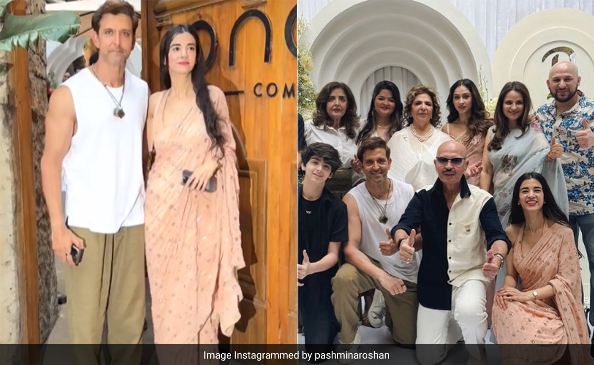 Hrithik Roshan's mother Pinkie Roshan celebrated her 70th birthday on Sunday with her family. Hrithik Roshan's plus one for the festivities was girlfriend and actor Saba Azad. The couple were pictured together while making an exit out of a Mumbai eatery. They happily posed for the paparazzi stationed there. Meanwhile, Hrithik's cousin Pashmina shared a family photo that features Hrithik, Hrehaan, Hridhaan, Rakesh Roshan, Rajesh Roshan, Kanchan Roshan, Eshaan, Pashmina Roshan, Sunaina Roshan and Suranika. Saba Azad also features in the photo.