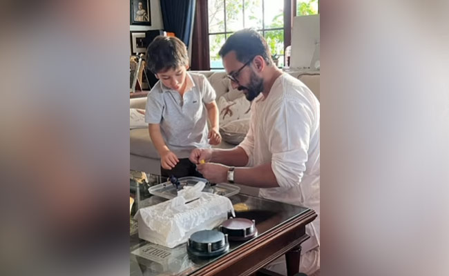 Kareena Kapoor has shared a video of the father-son duo immersed in their little project
